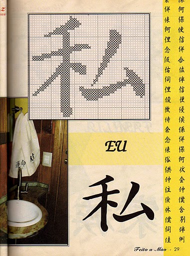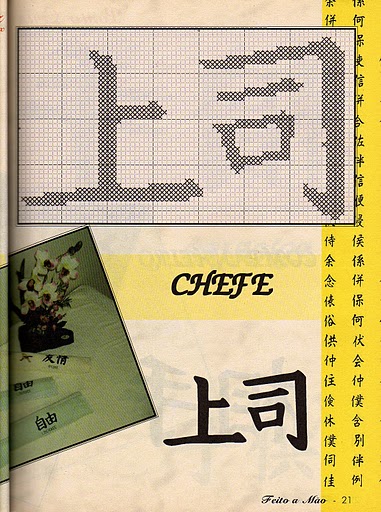 Achei bem legal os modelos dos kanjis, vou usar para pintar (é dificil achar motivos masculinos e acho que usando esses simbolos chineses fica bem másculo, dependendo de como se faz).